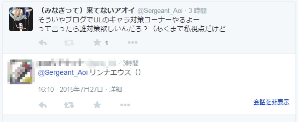 と言う訳で唐突に始まりましたULキャラ対策コーナー第一回は…
