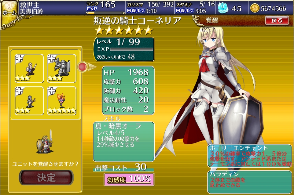 プレイ時間より行動力回復待ち時間の方が圧倒的に長いアイギスですが、育成進行中。